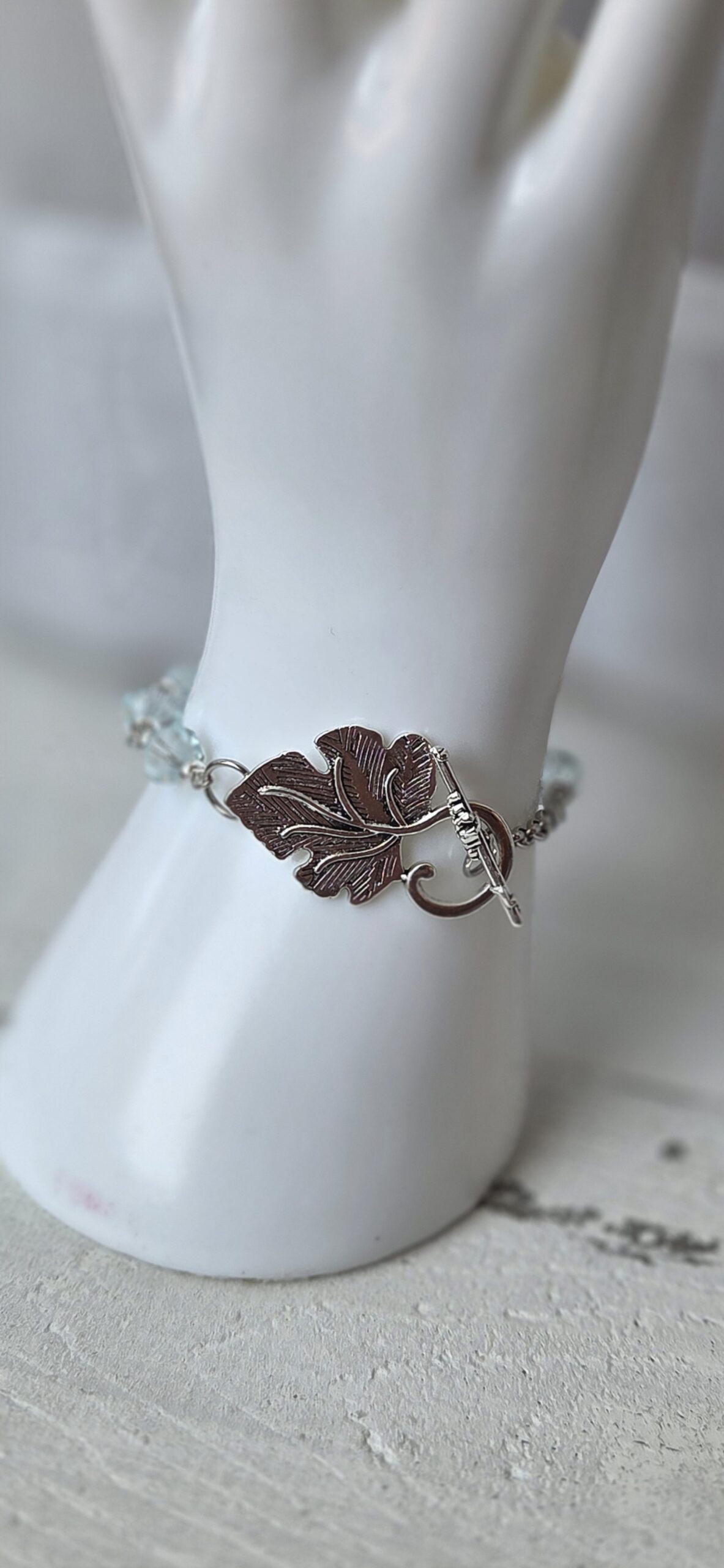 Handmade Crystal Bead Bracelet with Leaf Toggle Clasp