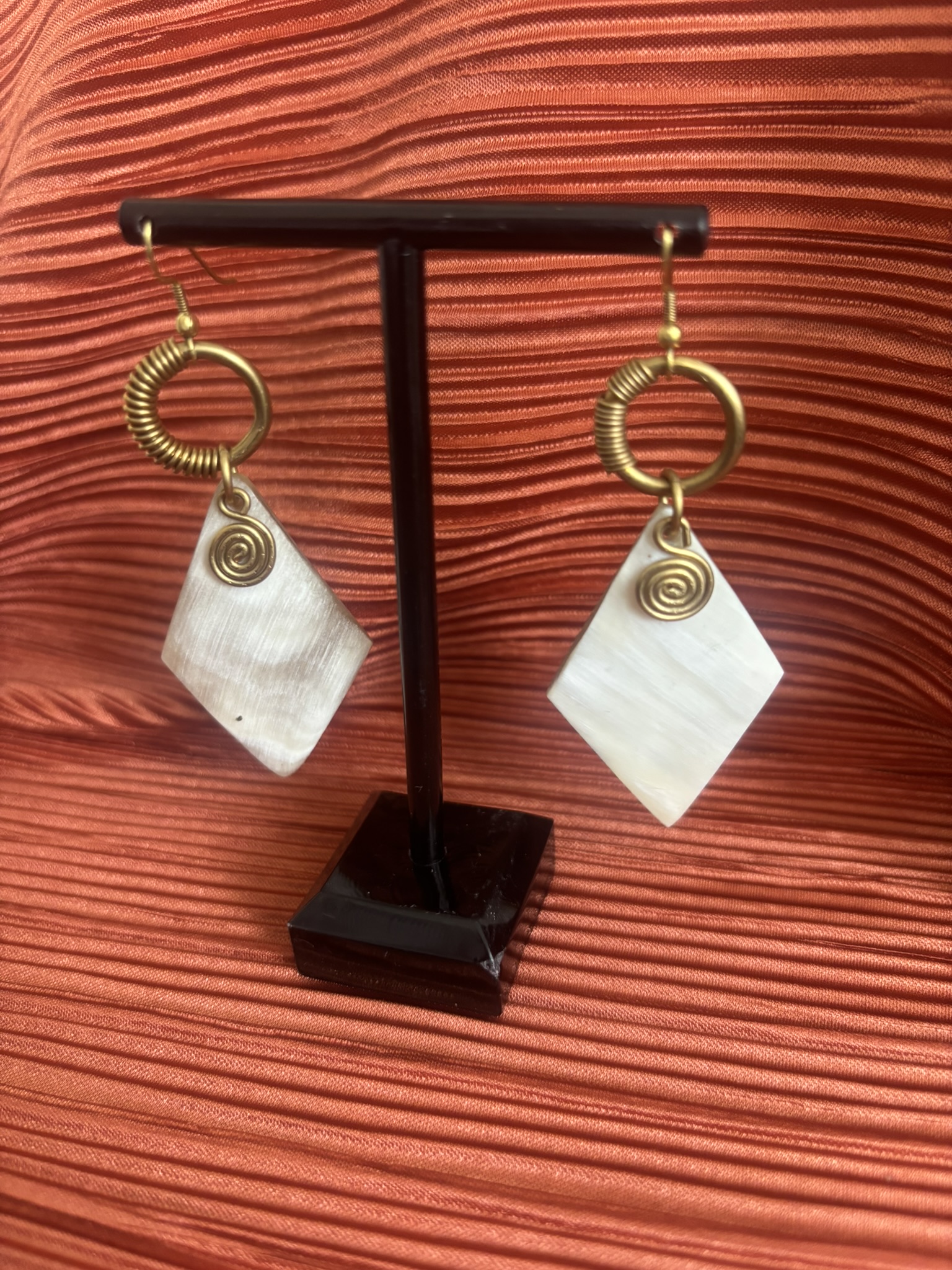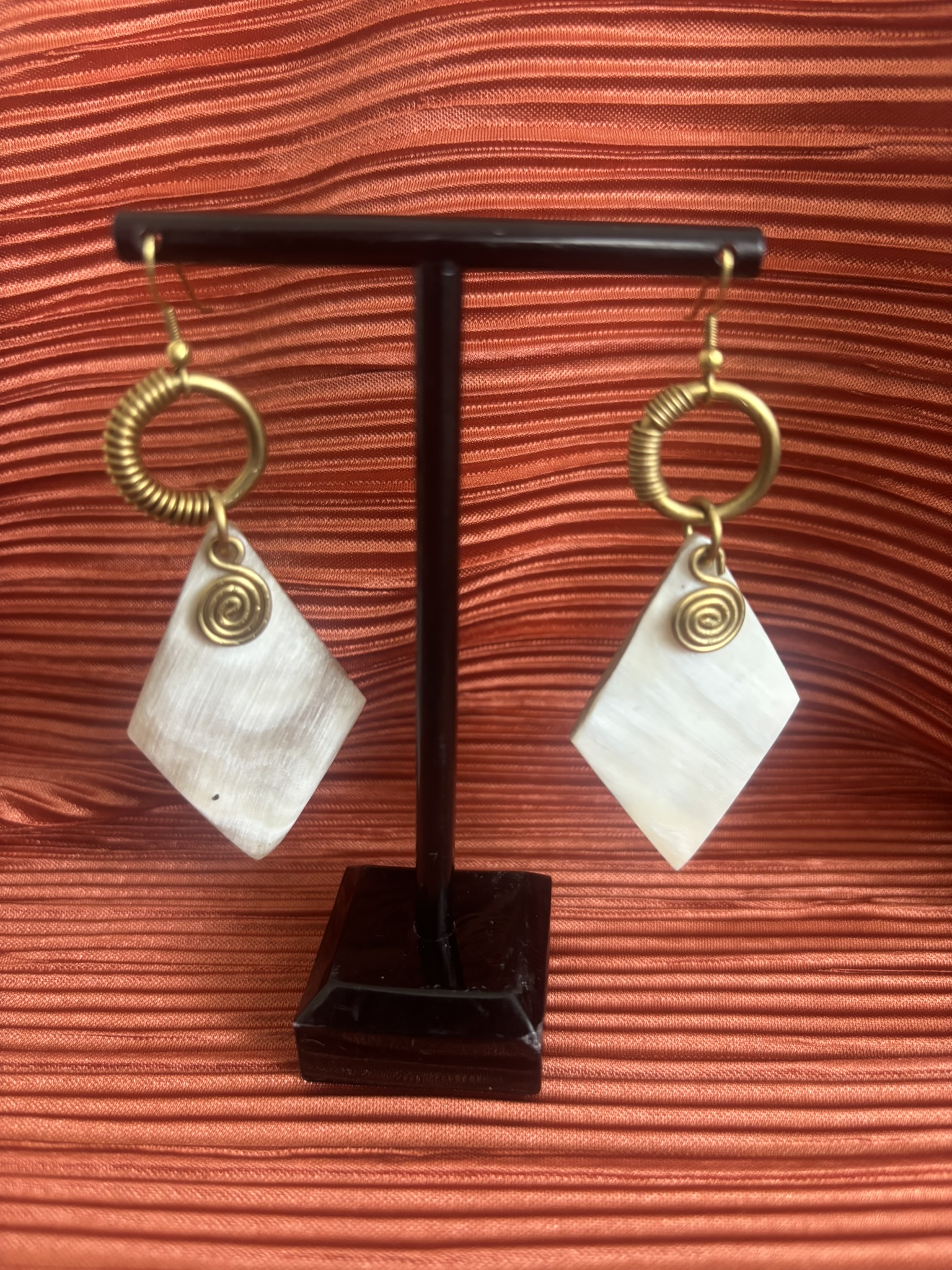 Handcrafted from bone and brass, these earrings celebrate the beauty of natural materials fused with bold design. Elegant yet versatile, they bring a touch of artistry and timeless charm to any look.