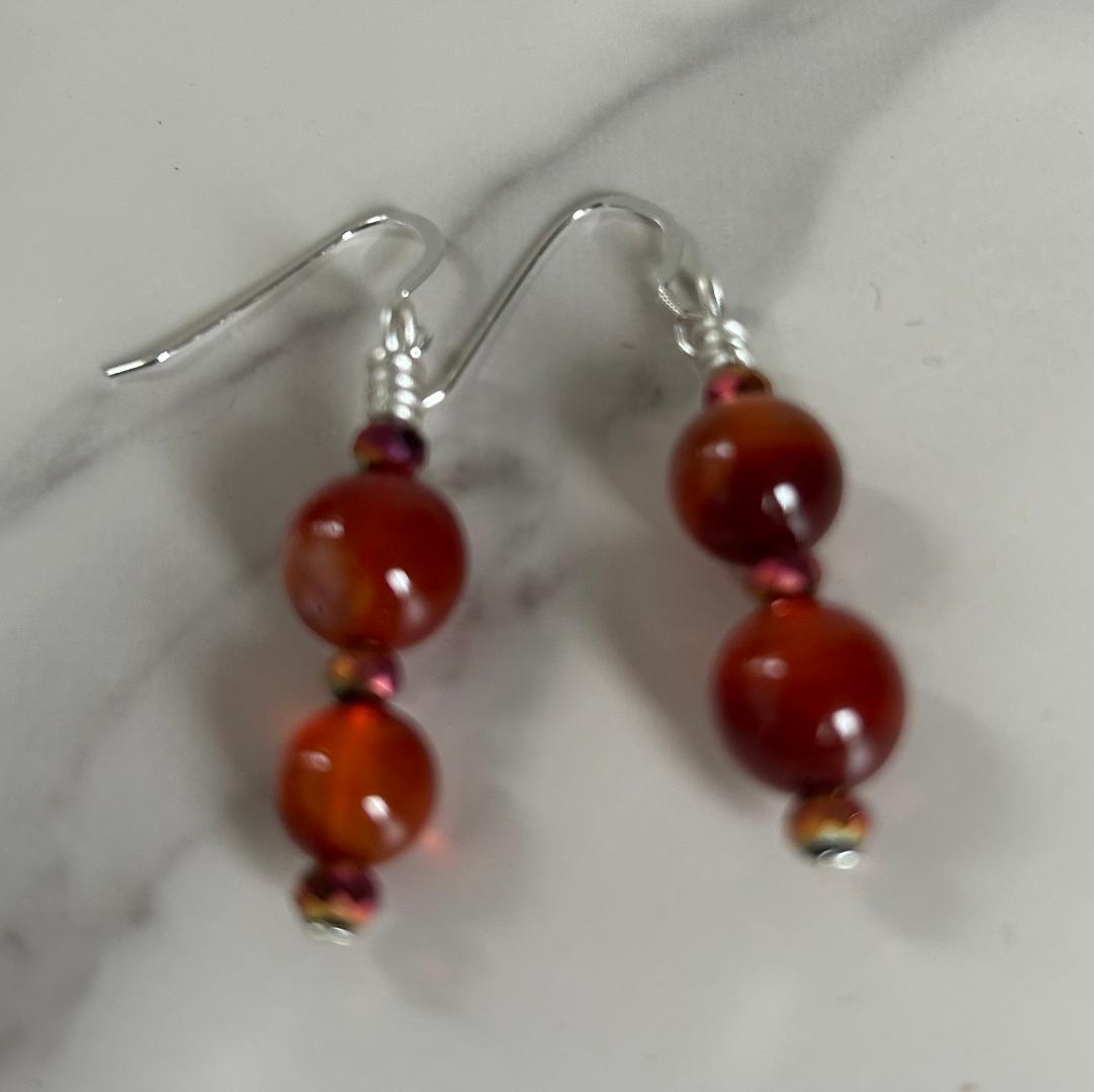 Carnelian and Sterling Silver Reiki Charged Earrings