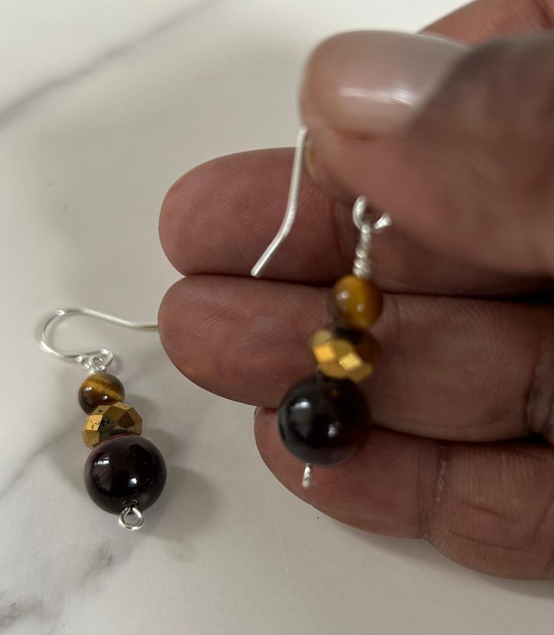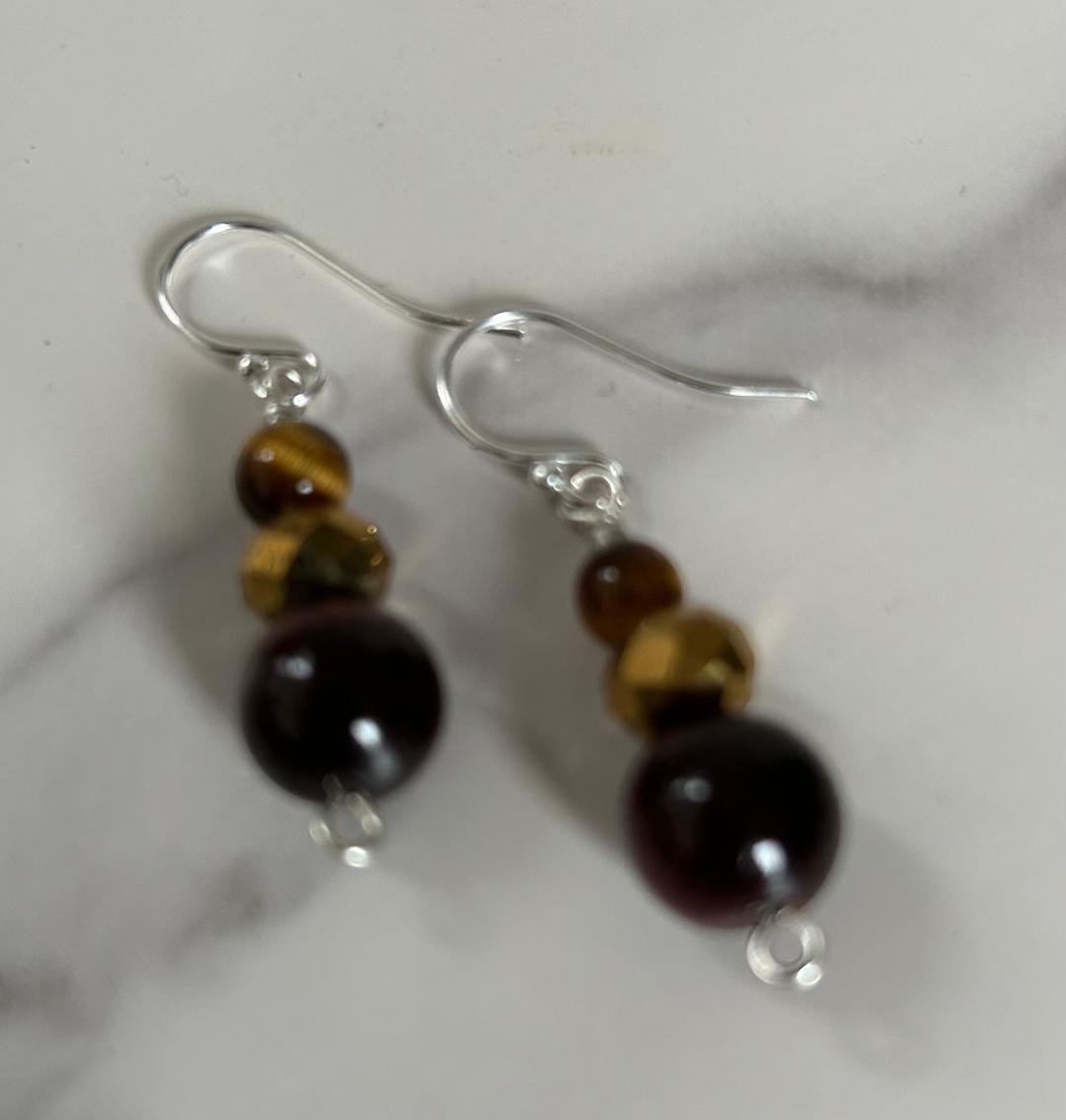 Reiki infused tigers eye earrings with sterling silver ear wires