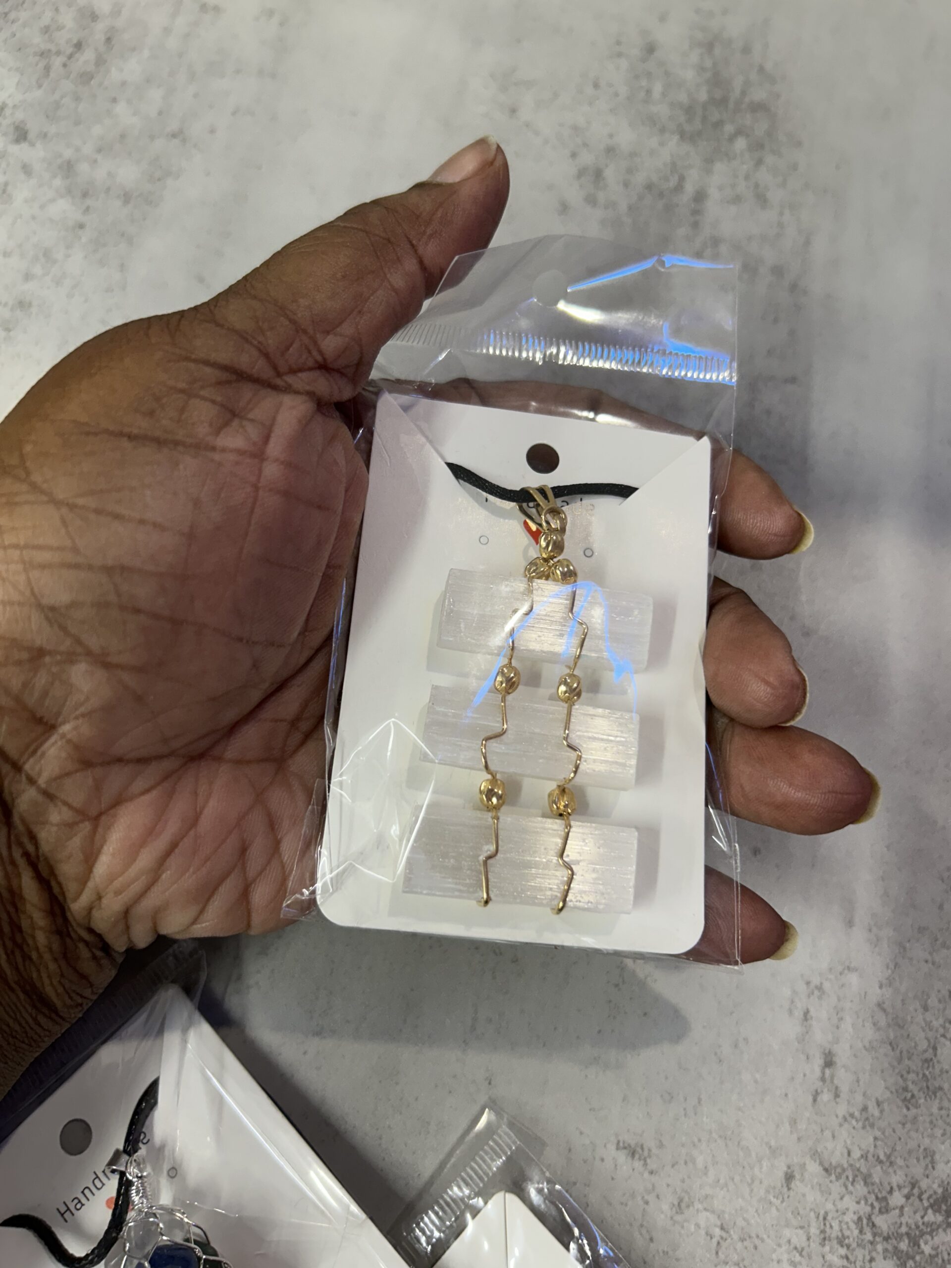 Selenite cleanses the aura of people, places and things. Leaving the wearer with a sense of lightness.