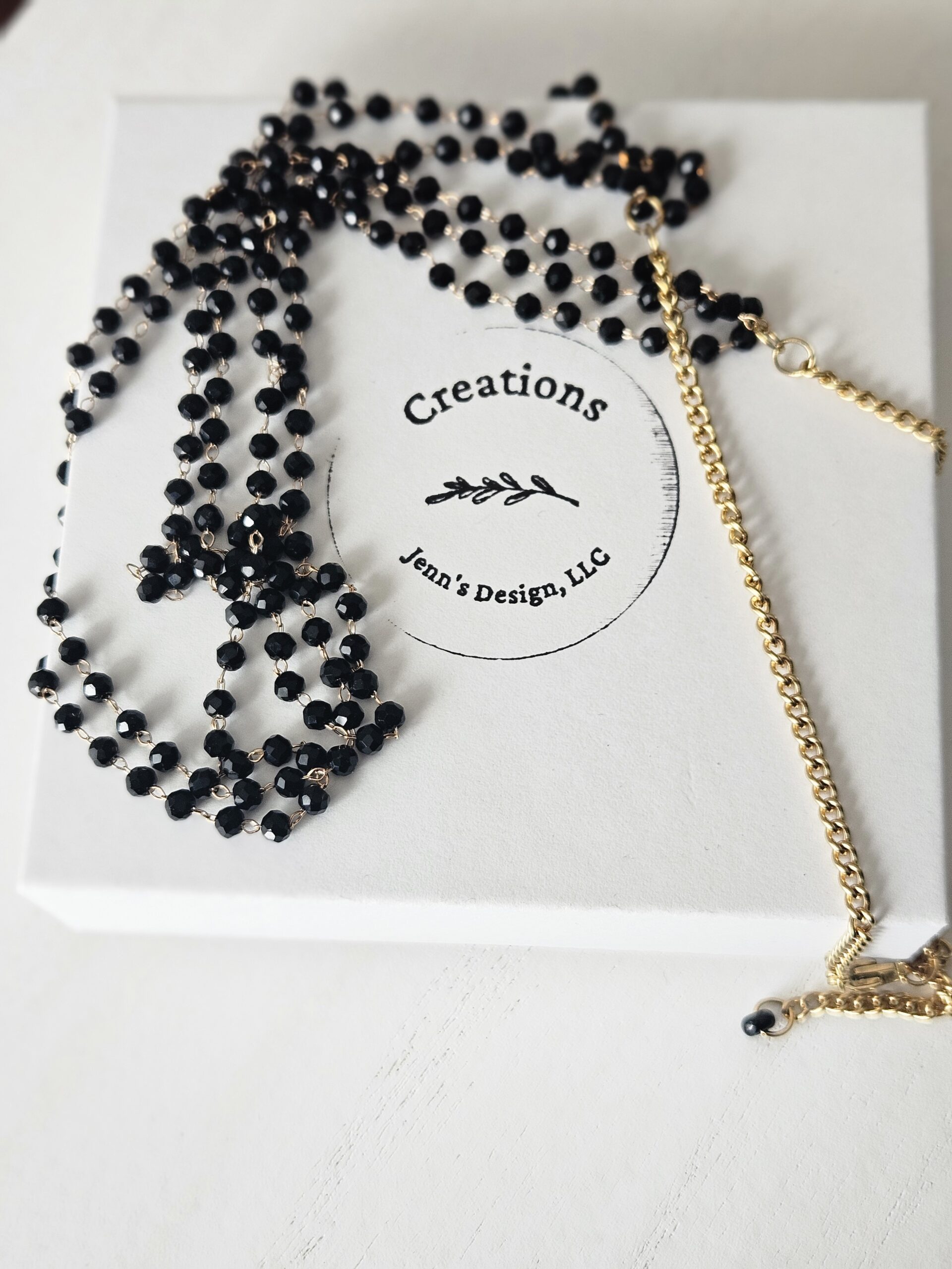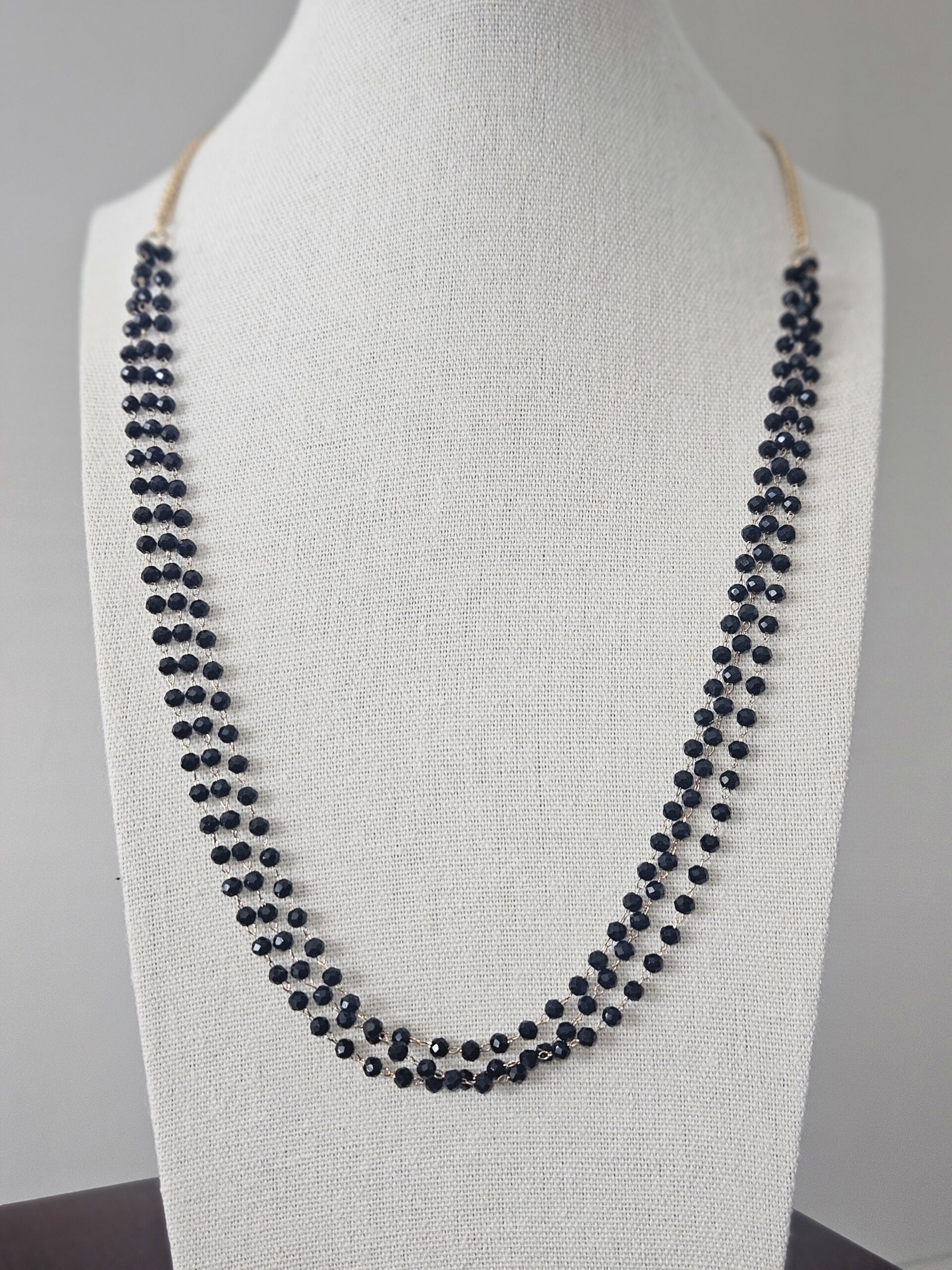 Simple yet elegant. Black beaded multi-layered necklace. Great piece to be worn all day comfortably casually or dressy. Wear at 26 inches.