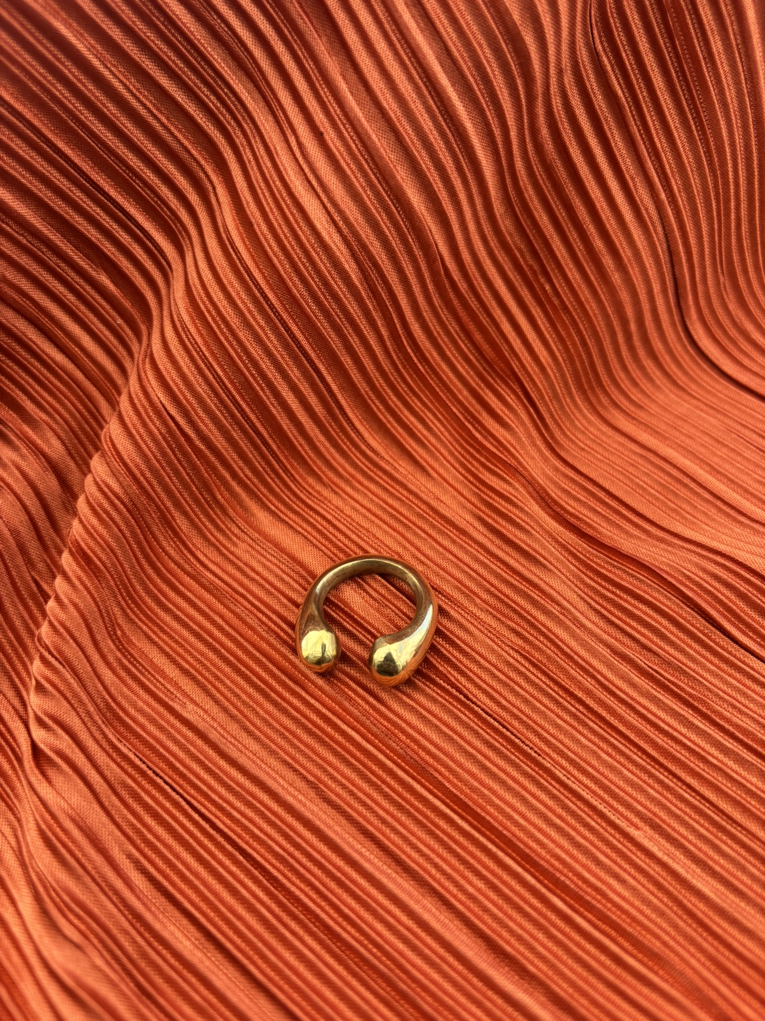 Elegant brass ring with an open-top design—flexible, bold, and effortlessly chic. Perfect for layering or wearing solo as a statement piece.
