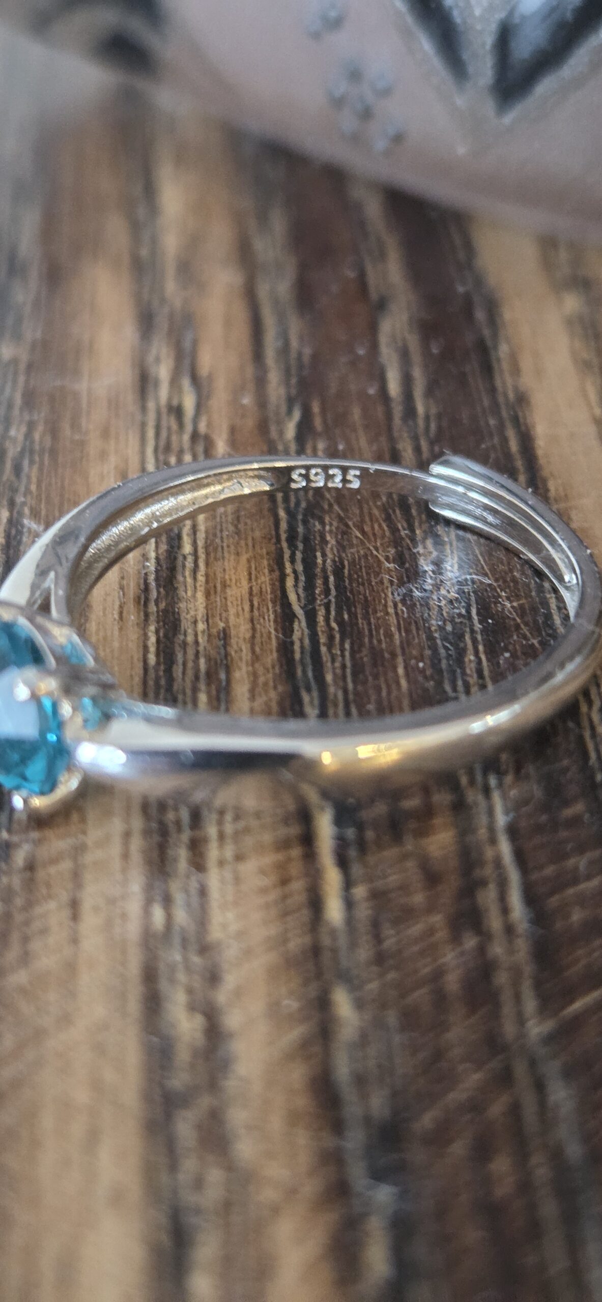 Handmade, hand selected 6mm ocean blue Rhinestone set into adjustable sterling silver ring s925. Average size n adjusting 7 to 8.