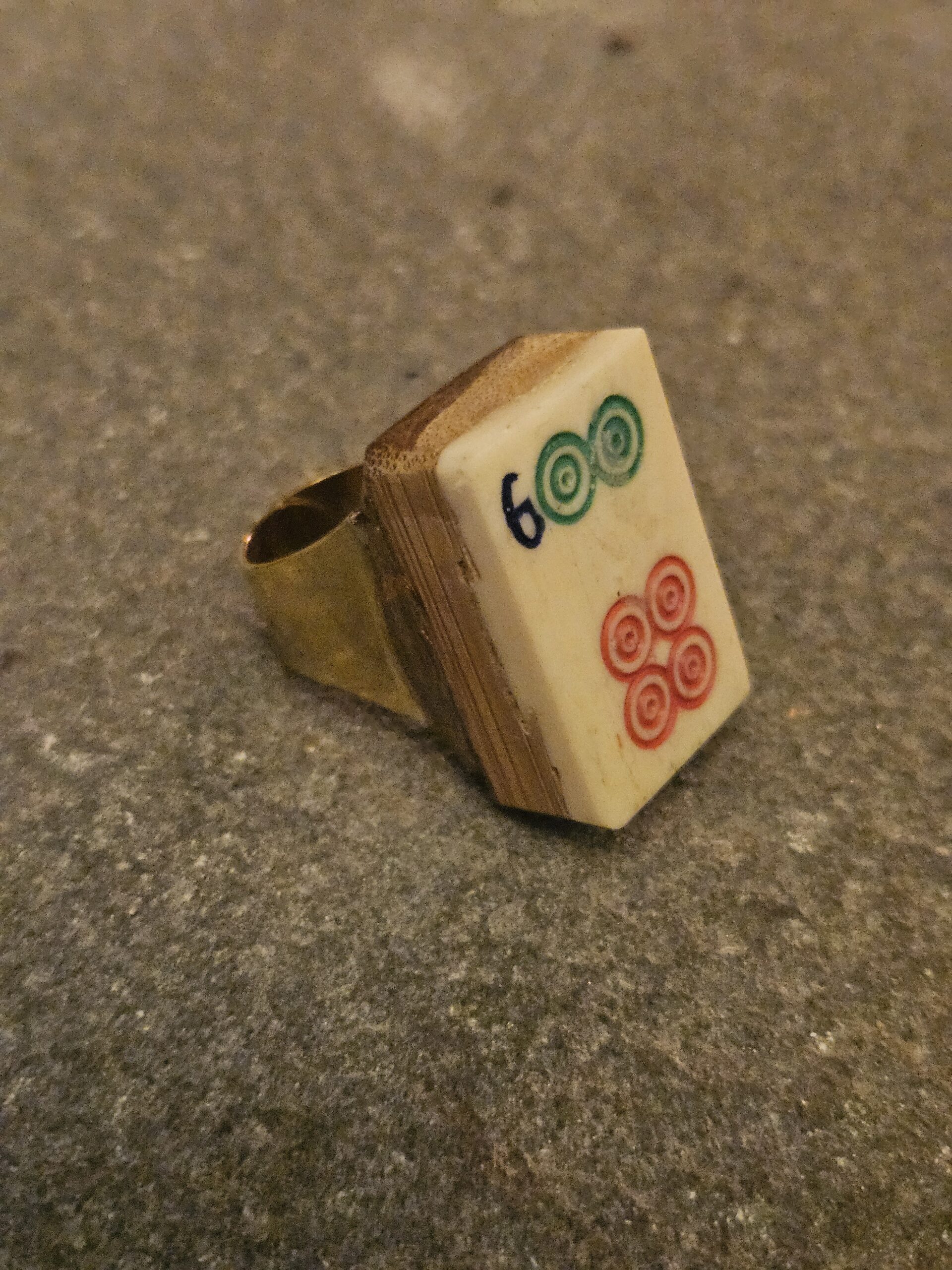 The Mahjong tile is dove tailed into wood.