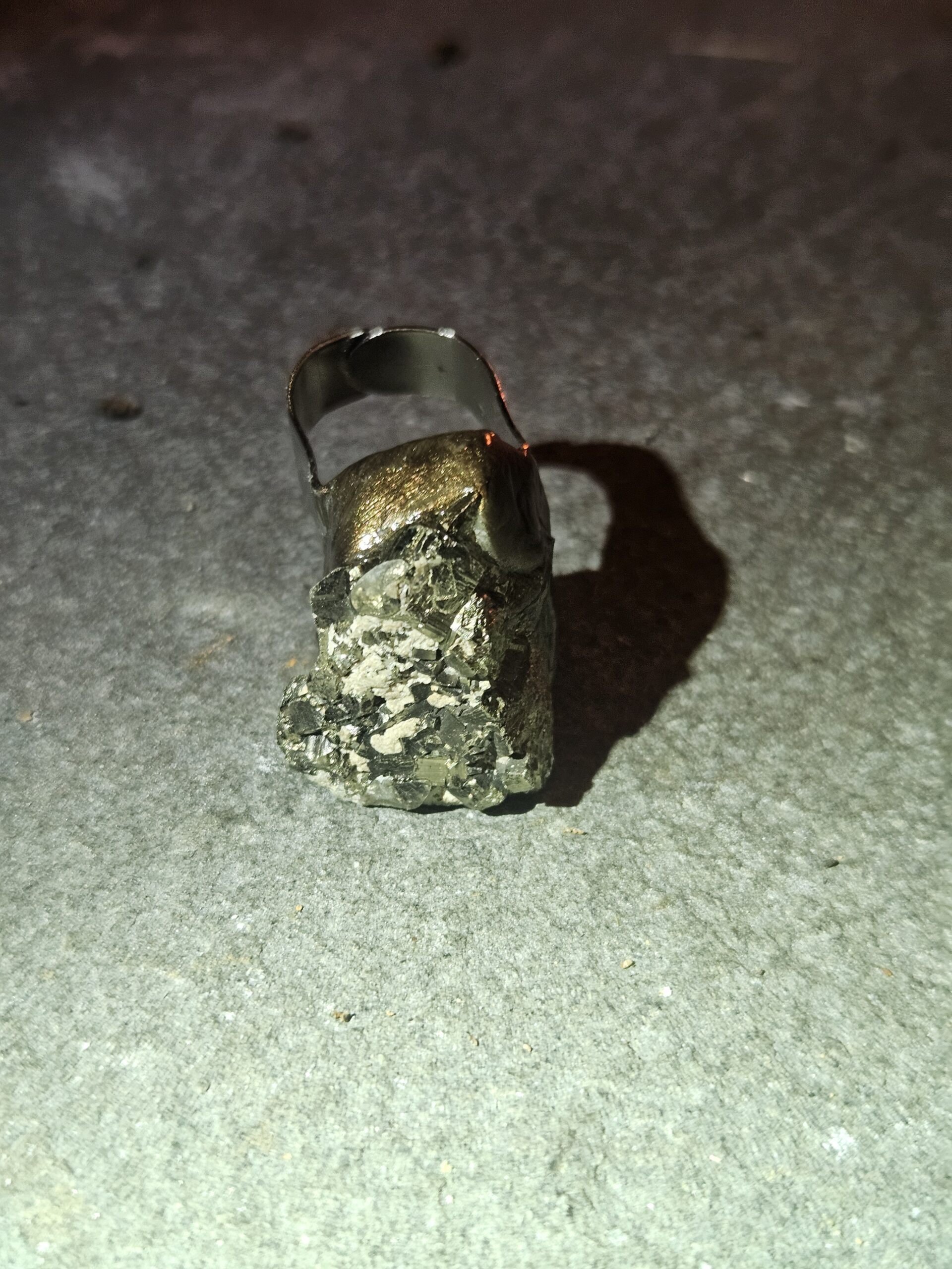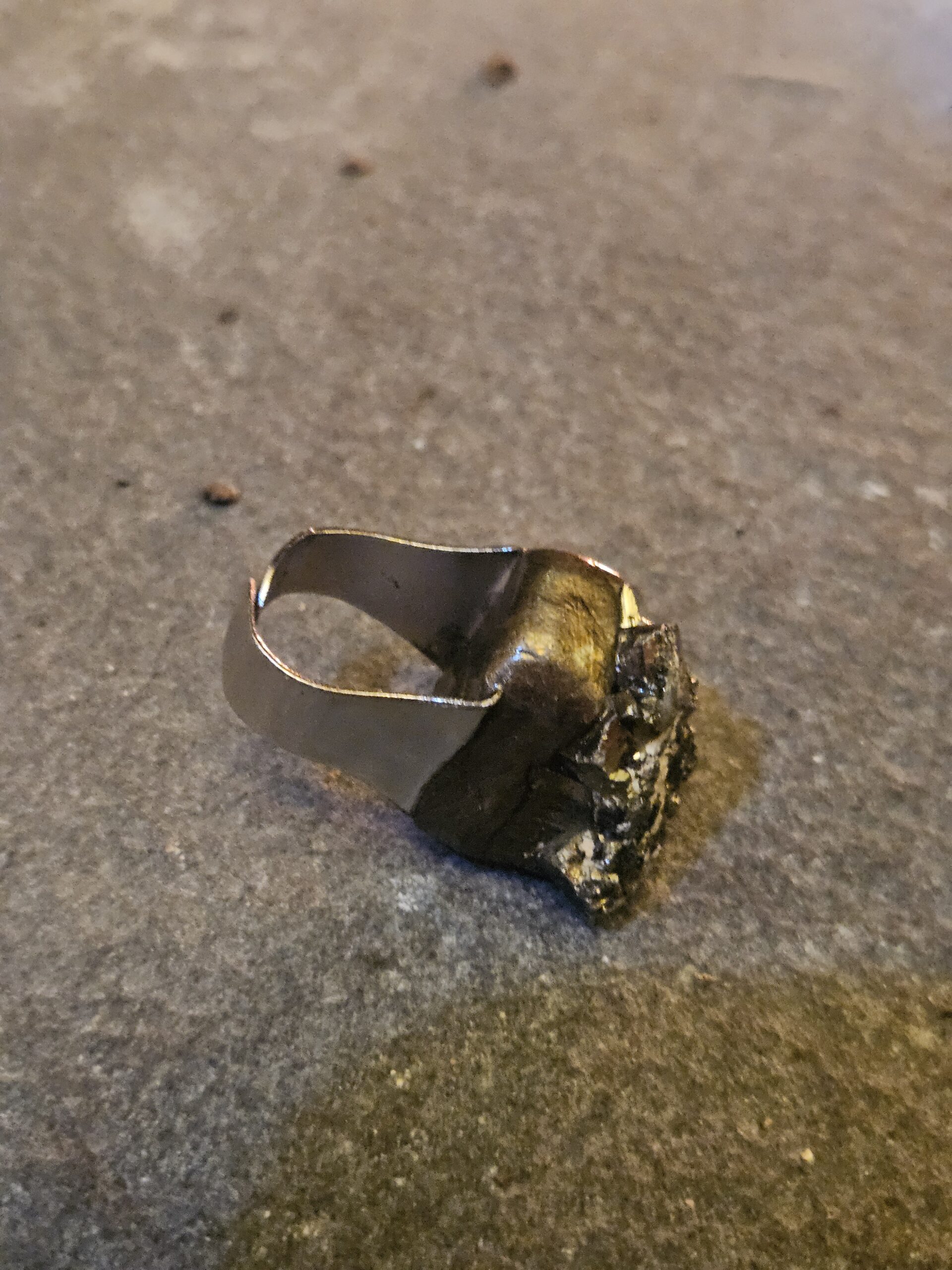 Upcycled adjustable cuff with sculpted aura quartz crystal