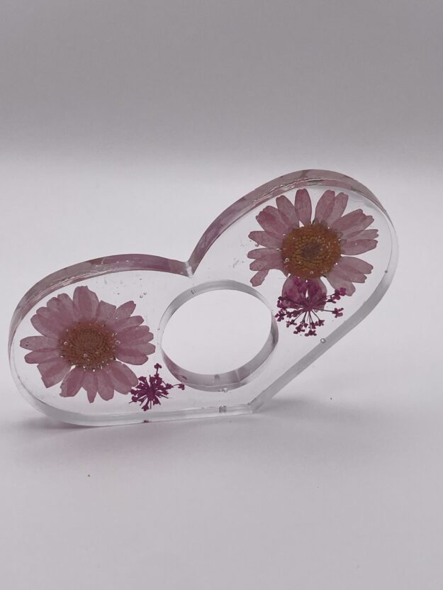 Each piece is made by hand and features real dried flowers preserved in clear resin. Because they’re handmade, no two are exactly alike—each holder is a small, functional piece of art.