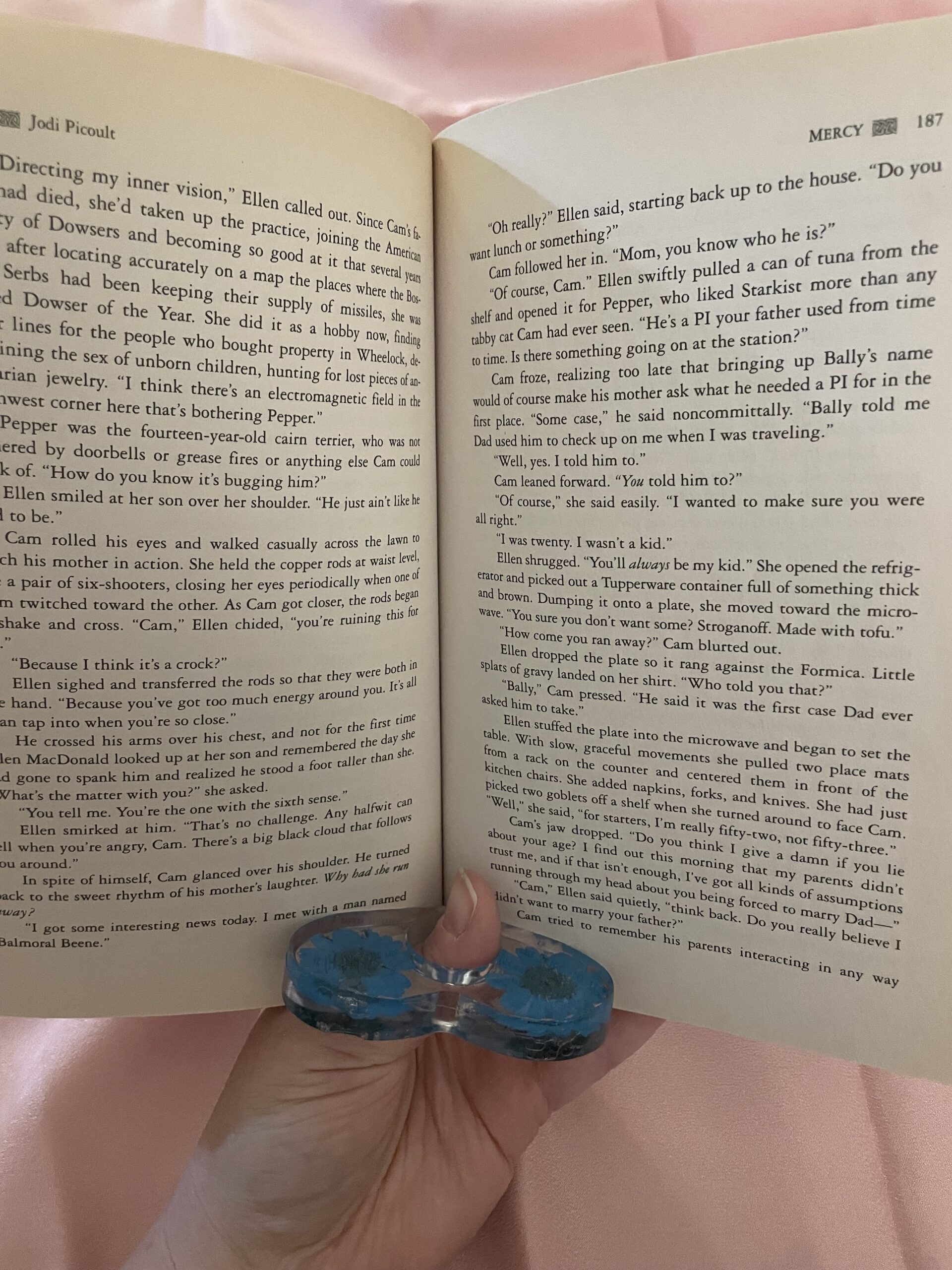 Handmade resin book page holders designed to keep pages open comfortably while you read. Each piece features real dried flowers and making reading easier—and prettier.