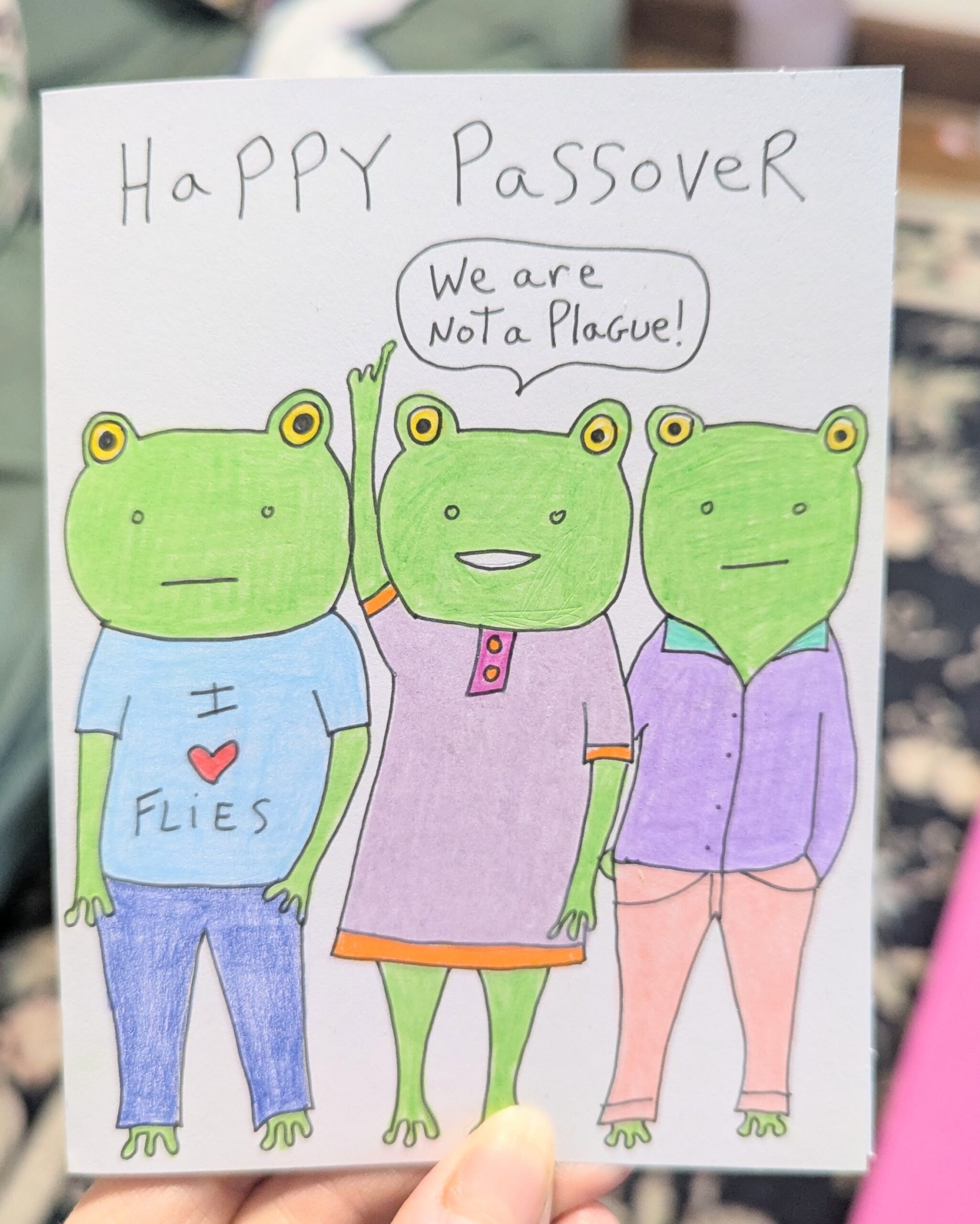 Happy Passover card for those who think frogs are not a plague but are friends.