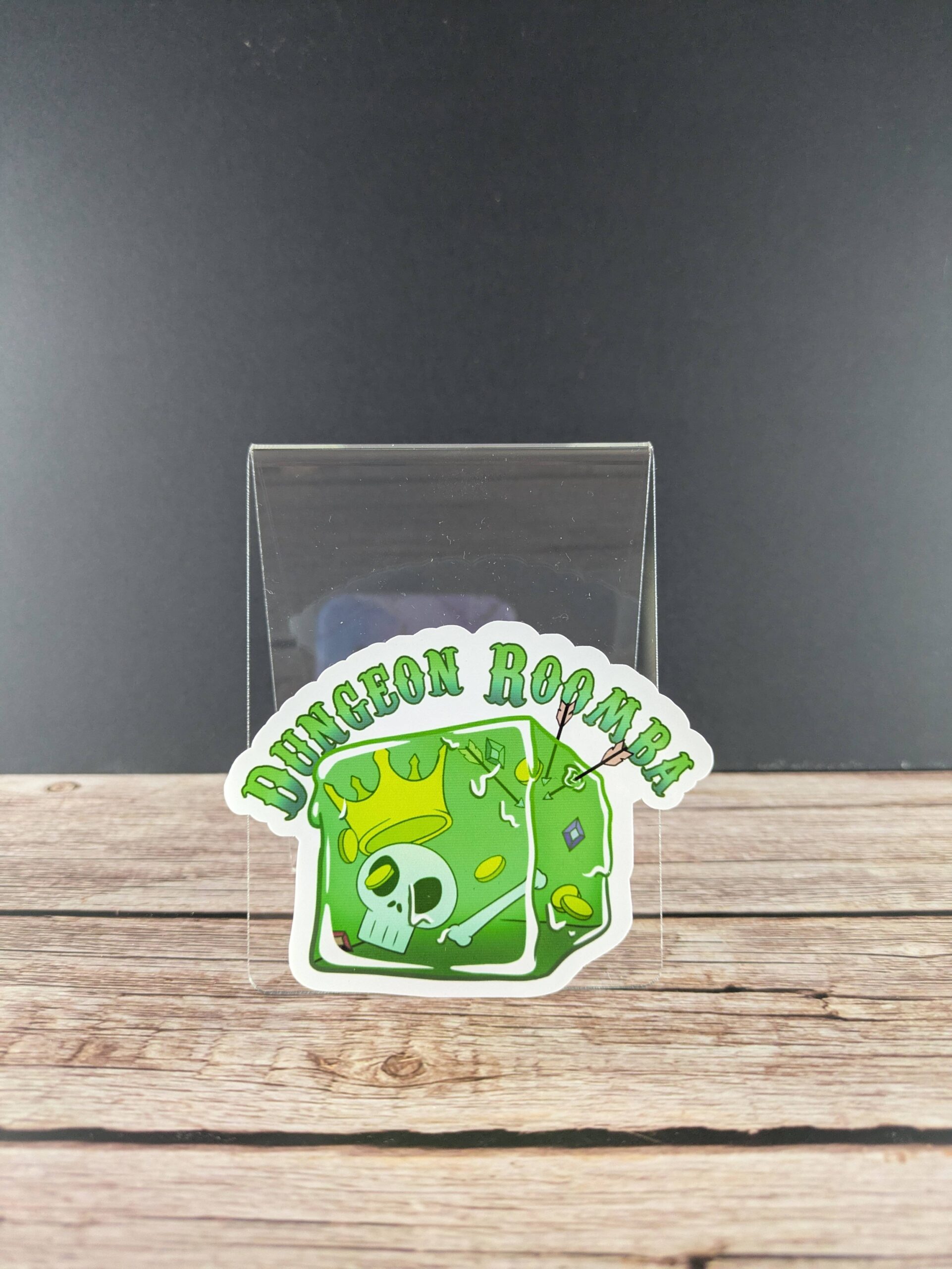 Get ready for a clean sweep of cuteness! This adorable 3-inch vinyl sticker features a happy gelatinous cube, ready to tidy up any dungeon as your very own “Dungeon Roomba.”