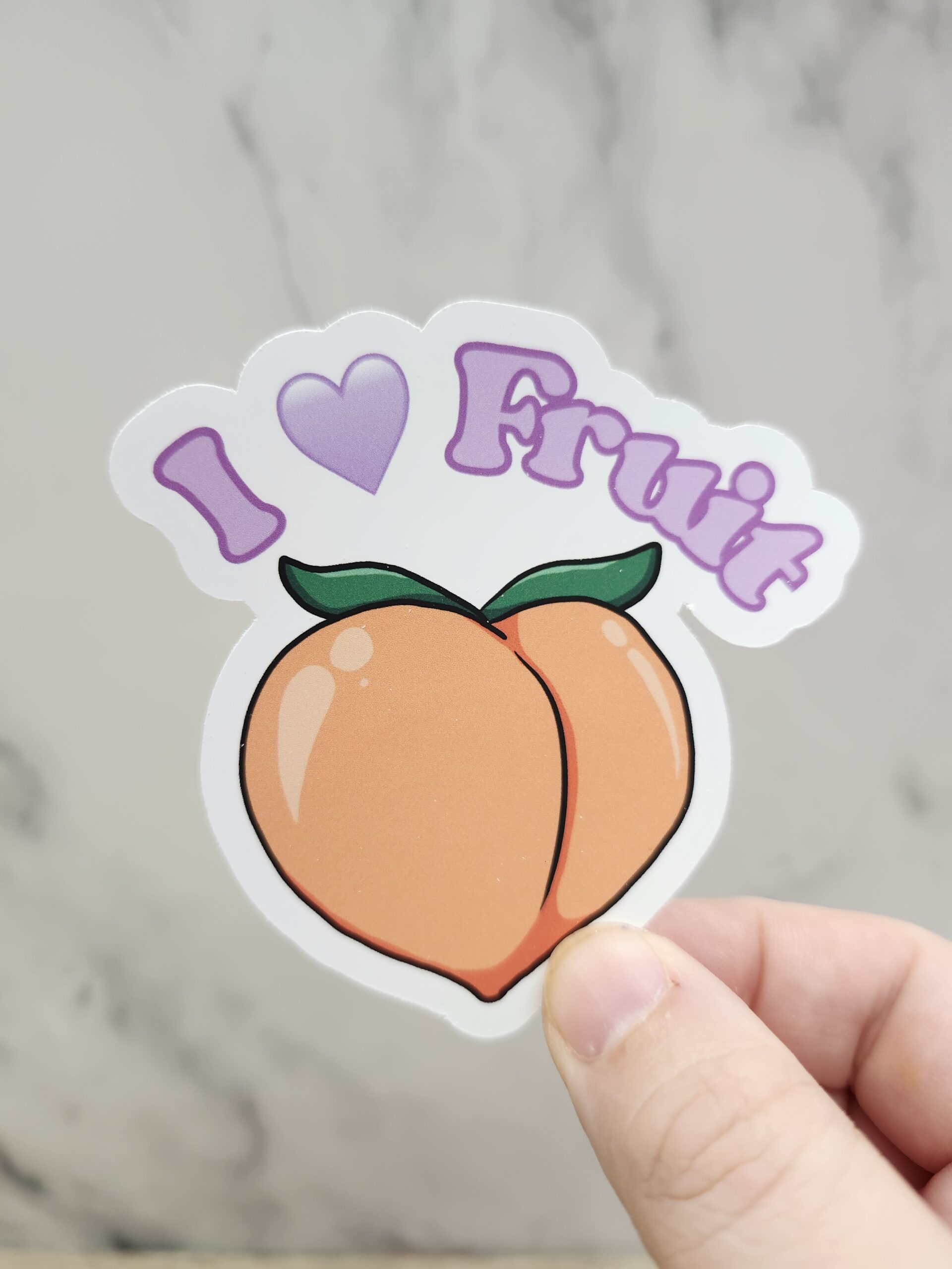 Show your love of fruits ::wink:: with this cheeky vinyl sticker. Perfect to decorate your laptop, locker, water bottle, notebook, or any surface that can use a sticker.