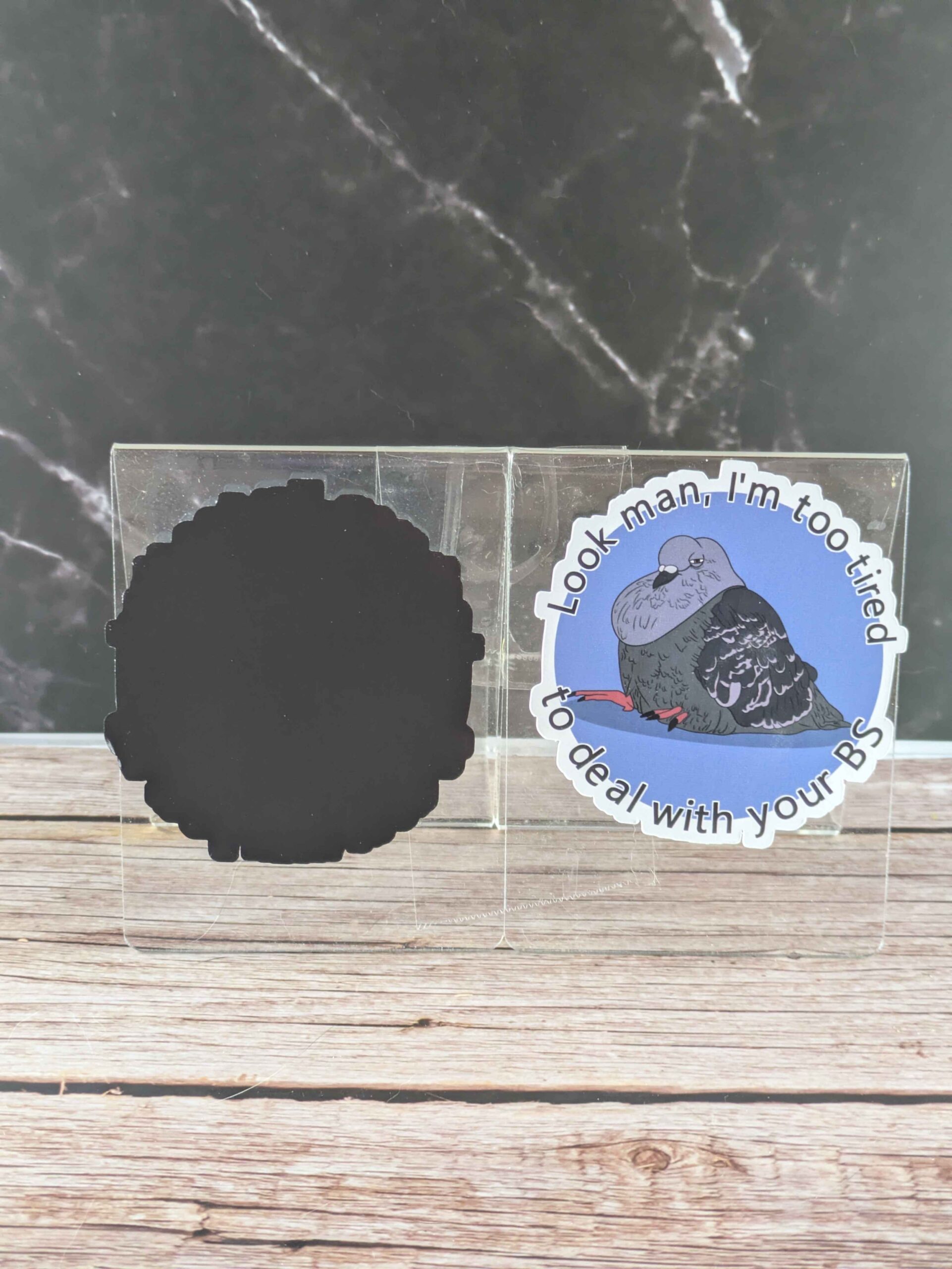 This burnt out pigeon is just too tired to deal with anyone’s B.S, and so are you! This 3 inch magnet is such a fun way to express how tired you are with dealing with other people’s B.S.