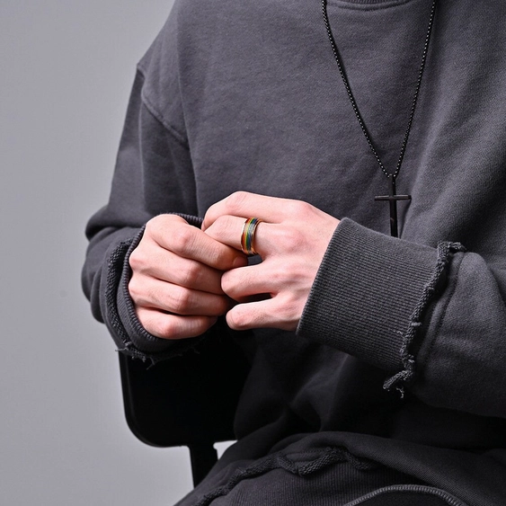 Rainbow Lgbtq Pride Fidget Spinner Ring in Stainless Steel