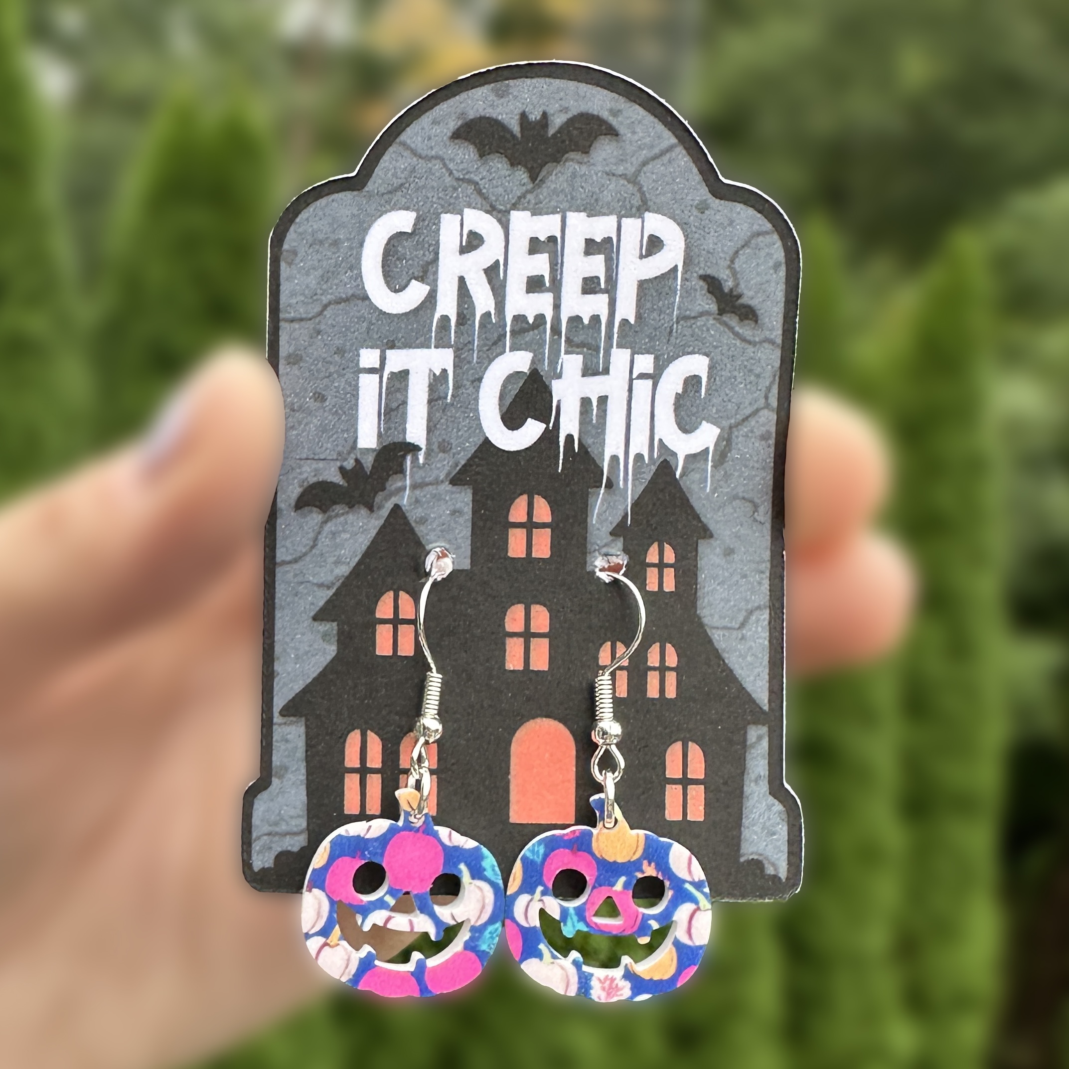 Brighten up spooky season with these colorful jack-o’-lantern dangle earrings.