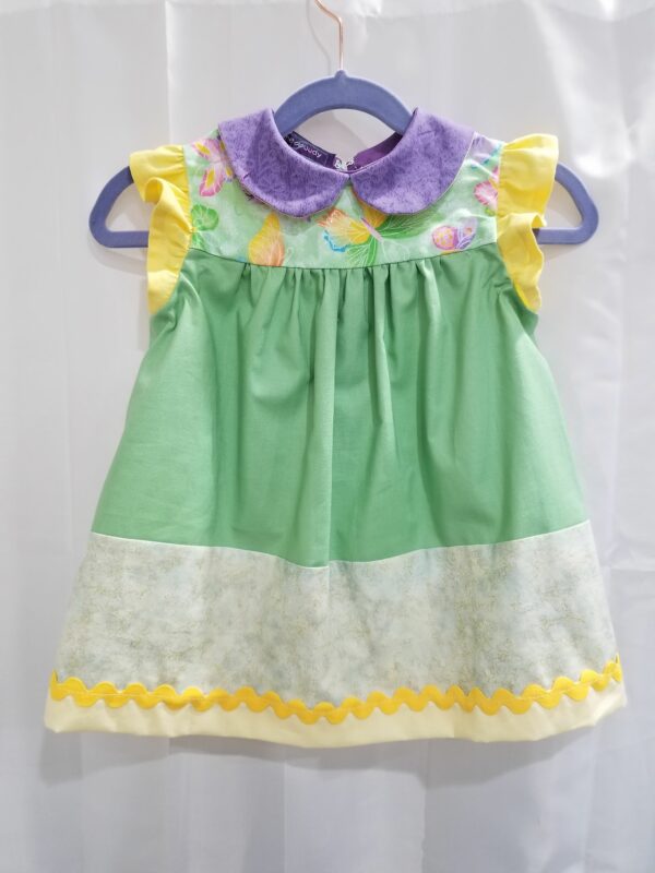 Judy’s patchwork style children’s clothing make each piece unique and fun. Can be worn for special occasions or just because! She can wear it for a birthday party, family gathering, holiday, family portrait, and more. If your child loves butterflies this is the perfect dress for her. Makes a great gift.