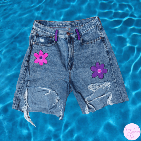 Hand painted with varnish protection upcycled jorts.