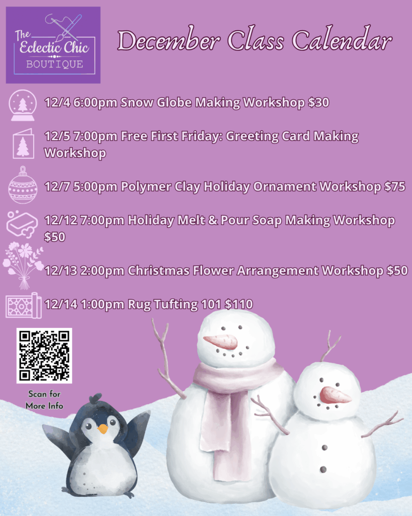 Read MoreOur December craft classes and events are listed and ready to book! Whether you are looking to get your friends and family together to craft some beautiful holiday memories, or…